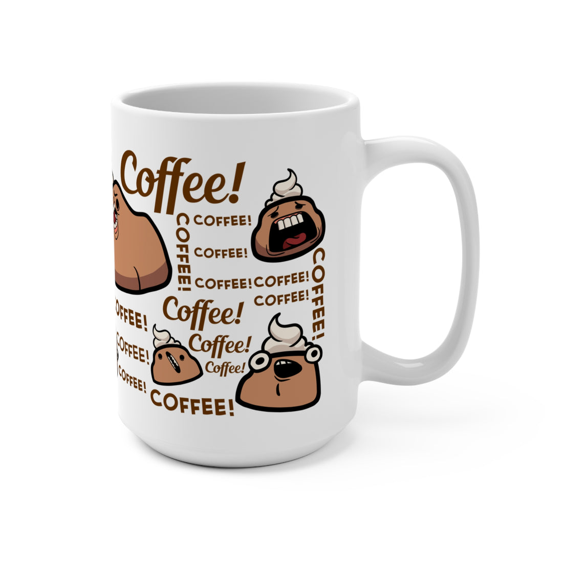 There's never too much coffee! COFFEE! COFFEE!!!!!Enjoy this big size (15oz) white, durable ceramic mug....