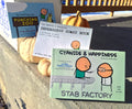 You have all been so polite and patient while we’ve been cranking away in the Factory…the STAB FACTORY that is!! Well, it’s paid off, because it’s finally here!! We are proud to announce our newest book is hot off the presses!! With 30 never seen before comics, a poetry corner, and foreword by Bo Burnham! Order yours today to add to your collection!