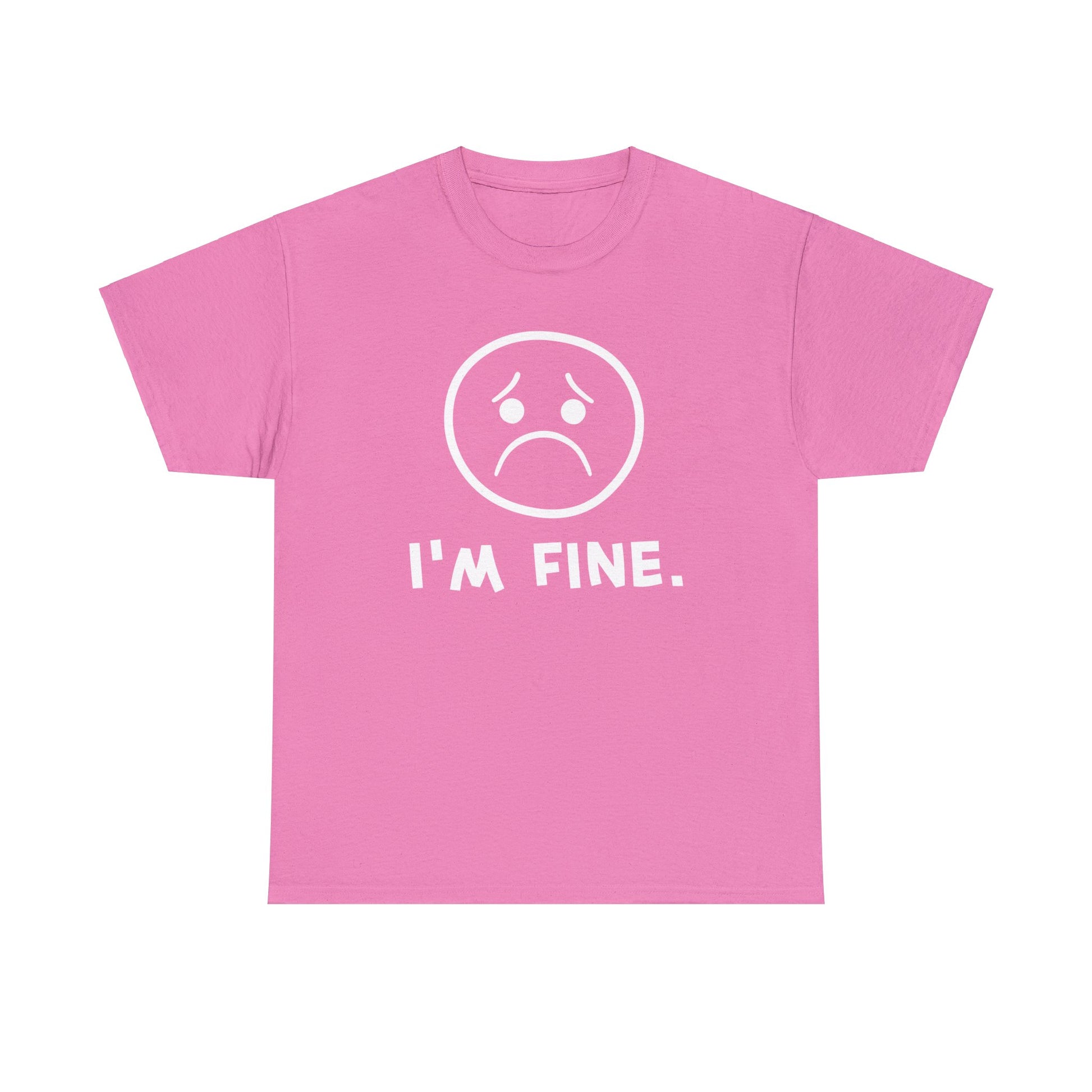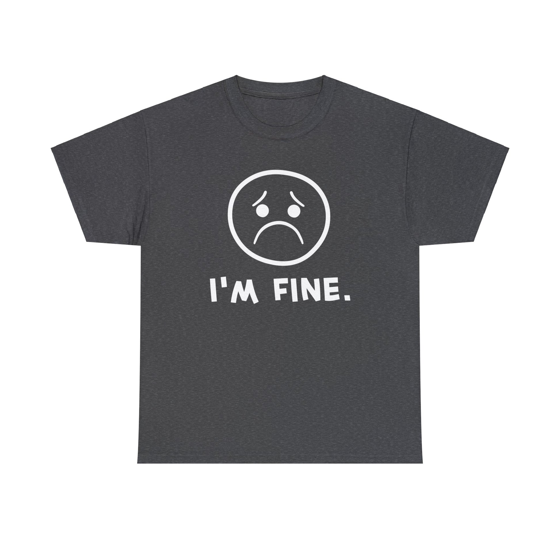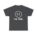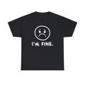 I'm fine. You're fine. We're fine. Show how fine you really are with this expressive t-shirt, available for a limited time in the most depressing of colors.