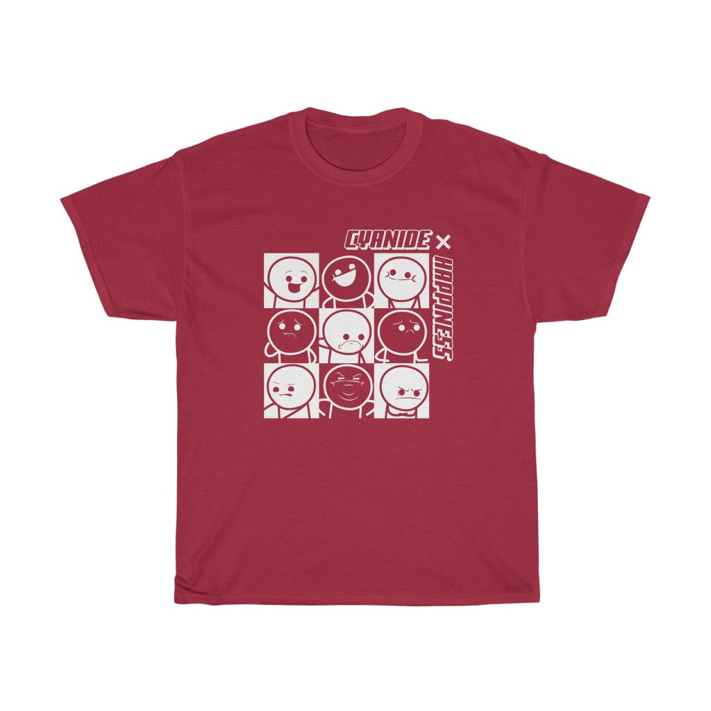 Why express a single feeling when you can express a menagerie of them all at once with your favorite Cyanide & Happiness face! This heavy cotton tee has the classic cotton look and feel. Casual elegance will make it an instant favorite in every wardrobe.